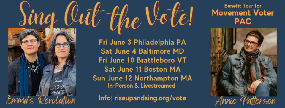 This is Annie's and Emma's Revolution's first Northeast tour in three years! Pat, Sandy & Annie are thrilled to be able to sing with all of you again - and to be supporting this terrifically important work.